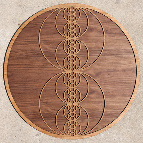 'Cosmic Harmony' Two Layer Wall Art design by Shawn Kessler. Laser cut from 2 layers of hardwood-veneered plywood, finished by hand and ready to hang with a laser cut wooden hanger on the back.